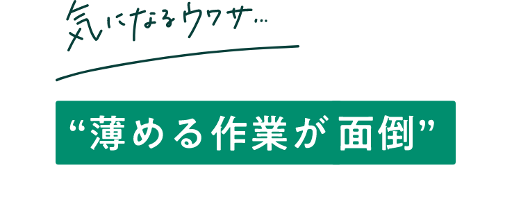 この薄める作業が面倒という方。こればかりはどうしようもないですね。試してみるとそれほど面倒ではないのでどうか一度お試しください。